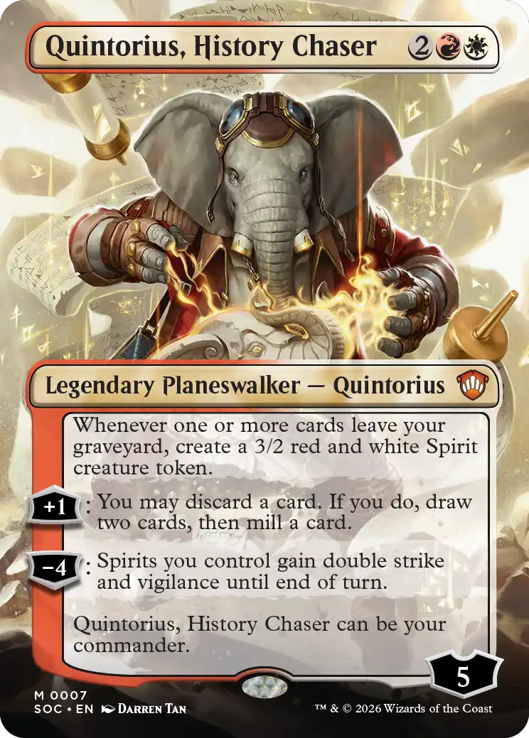 Quintorius had himself some giant shoes to fill as the face of the Lorehold deck, quite literally in fact. Elderly Commander players like myself will recall the distant year of 2021, when Boros was widely considered the weakest guild in Commander and white was pooh-poohed as too weak and too difficult to play without access to stax. Then Lorehold Legacies burst onto the scene, and suddenly white-red got a shot of adrenaline straight to the heart. Hofri Ghostforge (from the main Strixhaven set), Archaeomancer's Map, and many more new Lorehold cards presented great solutions to problems faced by both Boros and white specifically. As a treat, those two cards have made a return in this list, along with some incredibly cool reprints of rarely-seen cards like Bitterthorn, Nissa's Animus and Wave of Reckoning, which was last printed a whole decade ago. There's also the surprise inclusion of Moonshaker Cavalry, which for its power feels like the white equivalent of getting Craterhoof Behemoth reprinted in a Commander precon. This deck absolutely rocks.